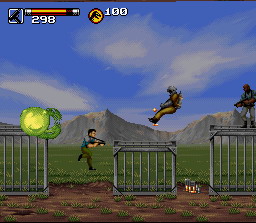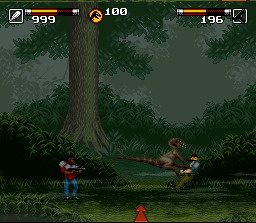 Il est possible de jouer à deux simultanément en mode coopération. Avec L et R on peut changer les armes, il y en a 3 qui sont inefficaces contre les humains (les 3 qui se règlent avec R) ce sont le fusil à décharge que l'on peut charger, il y a la mitraillette à seringue pour endormir les dino et il y a le bazooka. Les 3 autres armes sont efficaces contre les dinosaures et contre les militaires, il s'agit de la mitraillette (illimité), du pistolet mitrailleur et des bolas qui du même coup représente l'arme la plus efficace du jeu. Quand vous trouvez une recharge de munition, choisissez l'arme que vous voulez recharger avant de la prendre.