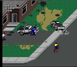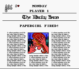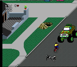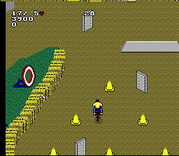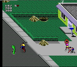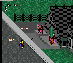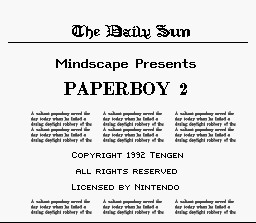 Paperboy second du nom est un jeu d'un genre qui appartient seulement au paperboys. Dans cette version, vous pouvez jouer avec le livreur de journaux ou la livreuse de journaux, au niveau des différences, il n'y en a pas. Le but du jeu est de distribuer les journaux. ces derniers sont en nombre limité d'où l'intérêt de bien viser. Quand un journal tombe pile dans une boîte aux lettres, cela rapporte 500 points. Mais il est amusant de les lancer à d'autres endroits comme sur le criquet de la voiture en réparation, laquelle ne manquera pas de tomber sur son propriétaire naïvement placé en dessous pour la réparer. Vous pouvez également balancer nonchalamment un journal sur le dos du cambrioleur de la boutique du coin (c'est la phase action du jeu). Une autre action possible est de faire des sauts sur les objets placés ici et là comme des tremplins qui vous font accessoirement gagner de la vitesse. Le jeu est composé de 4 stages qu'il faut arriver à faire, c'est-à-dire qu'il faut remplir toutes les boîtes aux lettres, si non on recommence le quartier. Bien sûr, tous les habitants ou presque sont abonnés au journal, à croire que personne n'a la télévision ... Dans le journal que vous livrez, "the dely sun", les nouvelles sont alarmantes, comme l'annonce d'un monstre errant. On remarque de temps en temps des phénomènes paranormaux comme l'épouvantail qui se taille ou les gargouilles qui gazouillent, ou encore le fantôme qui chaume. Il y a même une main verte, mais elle ne jardine pas. Le jeu a été réalisé à peine mieux que le numéro 1 sur amstrad cpc 6128. Les graphismes sont laids, enfin je veux dire que les finissions ont été oubliées. La bande son est nase, si la musique passe encore sans être intéressante, les sons sont vraiment minables. La jouabilité est limité comme les mouvements du cycliste. La durée de vie n'est pas longue sauf si bien entendu on souhaite en venir à bout ce qui sera le cas de peu de personne. Et dire qu'à l'époque on vendait ce jeu dans les 500 francs (75 €) ! Les personnages sont très très peu animés, comme les basketteurs qui ne décollent jamais leurs pieds du sol.