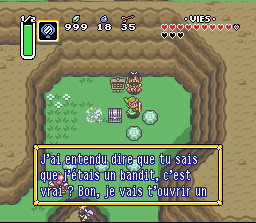 Après les deux volets de la série sur Nes, nintendo sort Zelda III qui prend place de RPG référence sur la super nintendo. Nintendo frappe un grand coup avec un jeu très attendu et en plus, moins cher que les autres; son prix était de 450 francs, ce qui est moins que la plus part des autres jeux de la console à cette époque. Ce jeu reste une référence, et je pense que c'est le meilleur jeu de la console. Il existe même un dessin animé Zelda, tellement les jeux éponymes ont été appréciés. Ce jeu mythologique mélange l'époque médiévale avec le fantastique. On aperçoit son personnage de 3/4 par le dessus ce qui offre beaucoup de possibilité dans cette fausse 3D. Link notre jeune héros devra évoluer dans un monde truffé d'ennemies car le jeu est très porté sur l'action. Mais on oublie pas les nombreux labyrinthes, les énigmes et les objets à trouver. Vous devrez de temps en temps parler aux gens mais pas trop souvent (car c'est ce qui est habituellement un point faible des RPG). A chaque nouvelle astuce résolue, on jubile et on attend la suivante. La réalisation du jeu frise la perfection, si les graphismes ne sont pas des plus épurés sur cette console, le jouabilité est presque parfaite, il faut quand même jongler avec strat pour accéder au menu des armes qu'il faut changer souvent en fonction des ennemies ou de la situation. L'animation du personnage est somme toute assez sobre mais il peut faire bon nombre d'actions, comme courir, prendre des objets du décore et les lancer, frapper ou concentrer son épée (avec B sans lâcher). Il peut nager, sauter depuis un point élevé. Utiliser ses nombreux items comme la flûte ou le bombes qu'il peut aussi porter et lancer plus loin. Les musiques sont classes surtout celle des boss qui vous donne une pêche d'enfer. La bande son est travaillé quand il pleut, on en frisonne. Mais le gros point fort de ce jeu est sa durée de vie quasi illimité, j'ai fait le jeu dans tous les sens trop de fois pour me souvenir combien exactement. Rien que le challenge de finir le jeu et de trouver tous les objets et tous les fragments de coeur prend un temps. Et si vous êtes un challenger, vous le finirez sans mourir et sans sauvegarder. Une fois le jeu fini, il y a un compteur qui vous informe du nombre de sauvegarde.