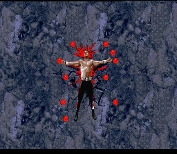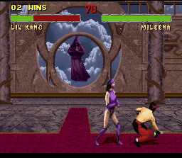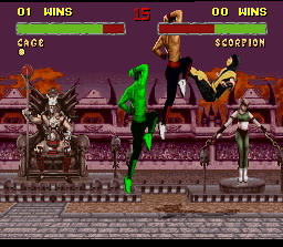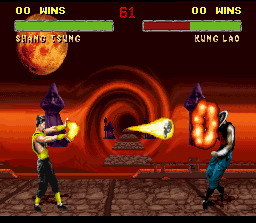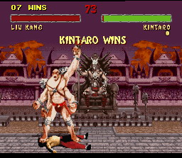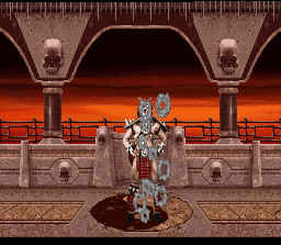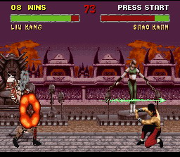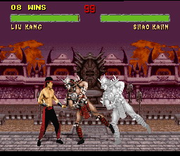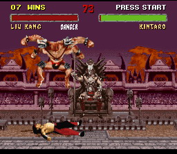 Shao Kahn le boss de fin et dieu dans l'outre monde. La technique pour le tuer est de faire des boules de feu basses à distance de lui.