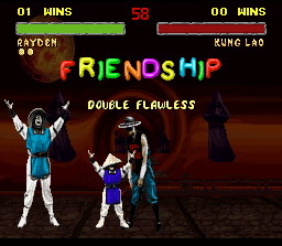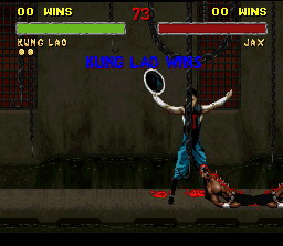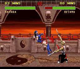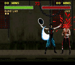 Les coups spéciaux sont impressionnants, entre autre le pédalage aérien de Liu Kang qui fait de gros dégâts, avec les handicaps au max, il tue en un coup.