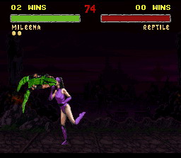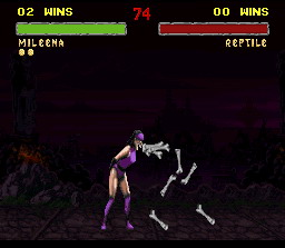 La douce Mileena vient vous faire un bisou pour vous consoler de votre cuisante défaite. Elle en profite pour vous avaler puis recrache les os, hallucinant.